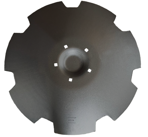 Диск бороны Lemken «Ромашка». Диаметр 645 мм, толщина 6 мм, 5 квадратных отверстий 13х13 мм на расстоянии 155 мм. Борсодержащая сталь 30MnB5. Твердость диска 50(±2)HRC.